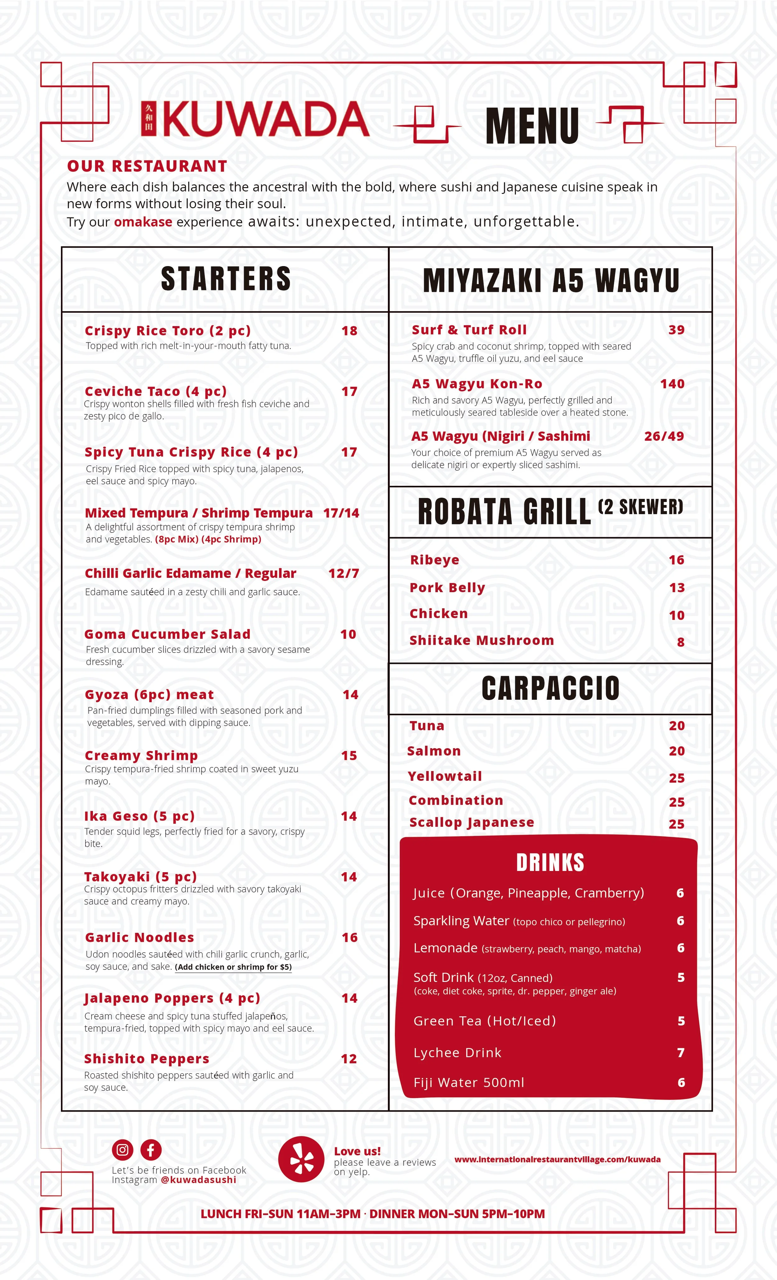 Welcome to Kuwada, where the art of sushi reaches new heights and every dish is a masterpiece crafted with precision and passion. Immerse yourself in an unparalleled dining experience where tradition meets innovation, and every bite tells a story.
